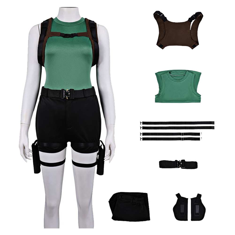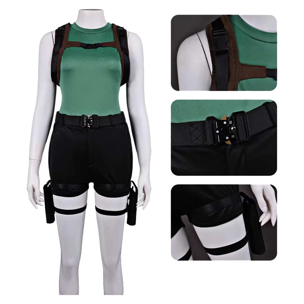 Tomb Raider Cosplay Costume Lara Croft Green Outfit Adult Female Halloween Carnival Costume